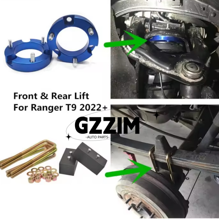 फोर्ड रेंजर 2023 T9 4x4 ऑफ रोड लेवलिंग लिफ्ट किट 2" फ्रंट शॉक स्पेसर रियर एल्यूमीनियम ब्लॉक
